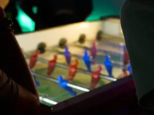 Wer gerade nicht selbst am Steuer saß, konnte die anderen Spieler:innen anfeuern oder gleich beim Tischfußball- oder dem Airhockeytisch weiterspielen. Dank Snacks und Getränken konnten sich alle zwischendurch stärken und frisch in die nächsten Runden starten. Klar war am Schluss vor allem eines: Gewonnen hat die gute Stimmung.
