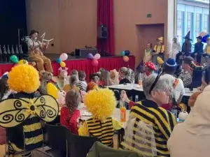 Am Sonntag, dem 8. Februar, läutete der Familienverband Au im Auer Dorfsaal den Fasching ein. Viele kleine und große Besucher:innen folgten der Einladung in bunten Kostümen als Clown, Polizist, Jäger, Spiderman, Pipi Langstrumpf, Prinzessin, Hexe, Fliegenpilz und noch viele mehr. Für den Höhepunkt sorgte Clown Pompo mit seiner Showeinlage. Mit Seifenblasen, Balancierübungen, Riesenluftballon und Zaubersprüchen konnte er den ganzen Saal unterhalten und zum Lachen bringen.