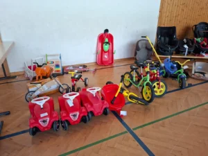Neben Schiern, Schischuhen, Helmen und Kleidung fanden sich auch Fahrräder, Traktoren, Autokindersitze und vieles mehr. Beim Kinderflohmarkt konnten die Kinder ihre eigenen Spielsachen anbieten – für viele eine spannende neue Erfahrung.