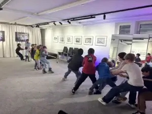 Während die Eltern den Ausführungen der Referentin im oberen Raum lauschten, fand im Untergeschoss eine Kinder Olympiade statt. Beim Sackhüpfen, Seilziehen, Dosenwerfen, Reise nach Jerusalem und Schubkarrenrennen lieferten sich die Kinder spannende Duelle. Besonders schön war zu beobachten, dass die Kinder in diesen anderthalb Stunden ihre Smartphones und Konsolen komplett vergaßen.